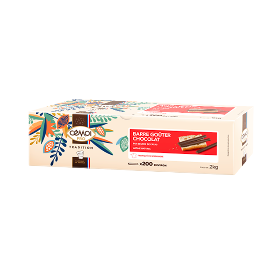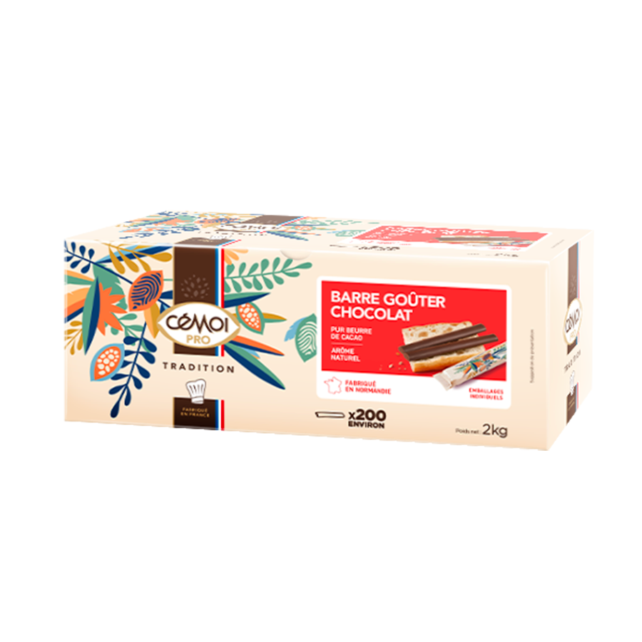 L’essentiel du goût, dans une barre pratique et engageante La Barre Goûter Cémoi Pro combine authenticité, simplicité et praticité. Fabriquée en Normandie, elle est élaborée à partir de chocolat pur beurre de cacao sans arôme artificiel, pour un plaisir chocolaté sincère, parfaitement adapté aux collectivités, boulangeries, reconditionneurs ou professionnels du CHR. Disponible nue ou habillée d’un flowpack attractif, elle élargit ses usages : de la cantine au café, du goûter à la vitrine. Disponible en 2 formats : carton vrac environ 200 barres par étui, soit 2 kg Avec un emballage individuel ou en produit nu