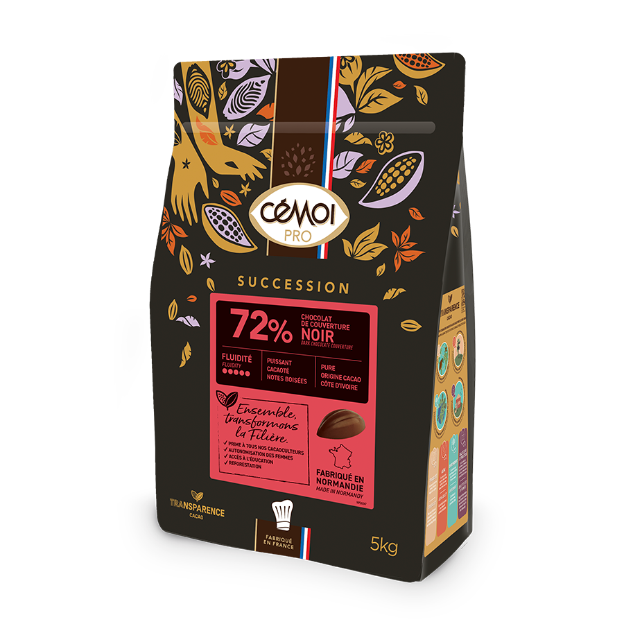 Un chocolat combinant puissance et subtilité avec des touches de cacao fin et des arrières notes de fruits jaunes. Son amertume ainsi que ses notes épicées et boisées font de cette recette un grand chocolat dans la plus pure tradition de la qualité française.