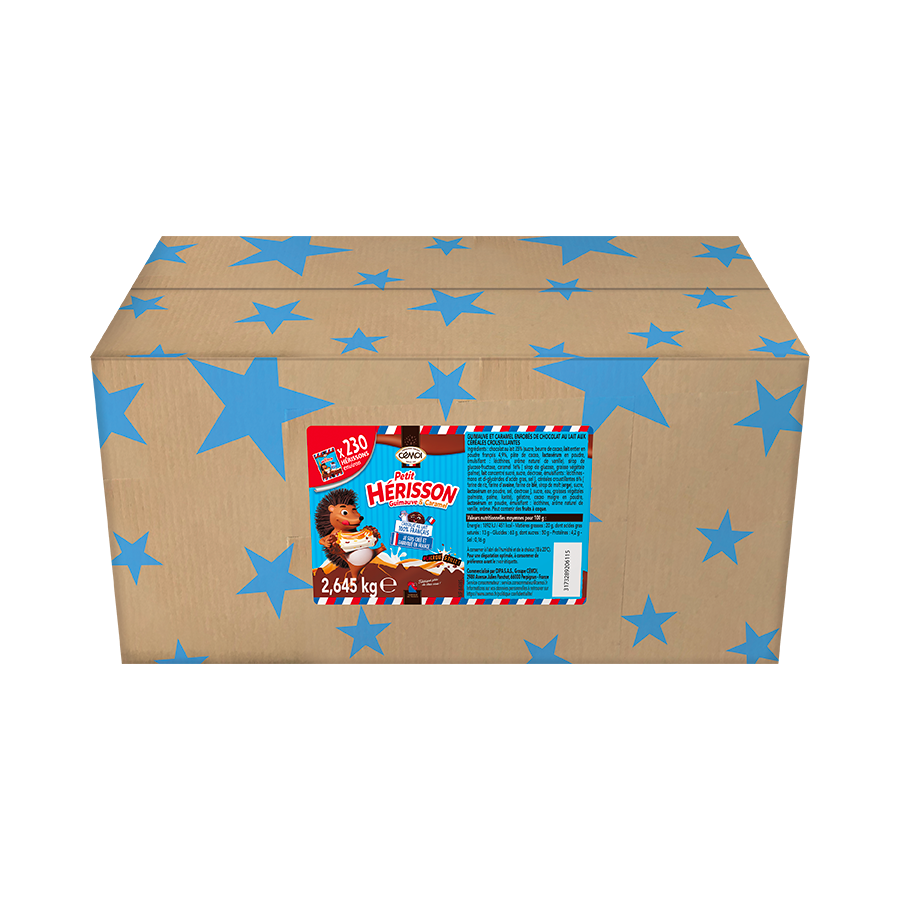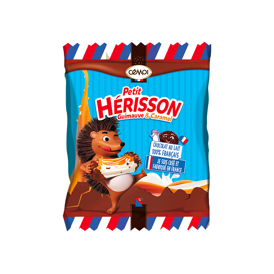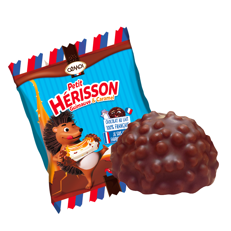 L’Authentique Petit Hérisson Guimauve se distingue par sa forme ronde et piquante, impossible à confondre. Sous sa coque de chocolat au lait se cache un cœur moelleux de guimauve, relevé par une touche de caramel coulant et des éclats de céréales croustillantes. Une combinaison unique qui mêle fondant, croustillant et gourmandise. Proposé en carton d’environ 230 pièces emballées individuellement, le Petit Hérisson offre une solution pratique, emballé individuellement et parfaitement adaptée aux besoins des professionnels : libre-service, pauses gourmandes, accueils clients, buffets ou espaces détente. Idéal pour une pause ultra gourmande et fun, il apporte une note originale qui séduit toutes les générations et complète parfaitement les offres de confiserie individuelle. Fabriqué en France dans la Chocolaterie Cémoi, il allie émotion, qualité et savoir-faire chocolatier. Disponible en : Carton de 2,6kg d’environ 230 pièces x11,5g